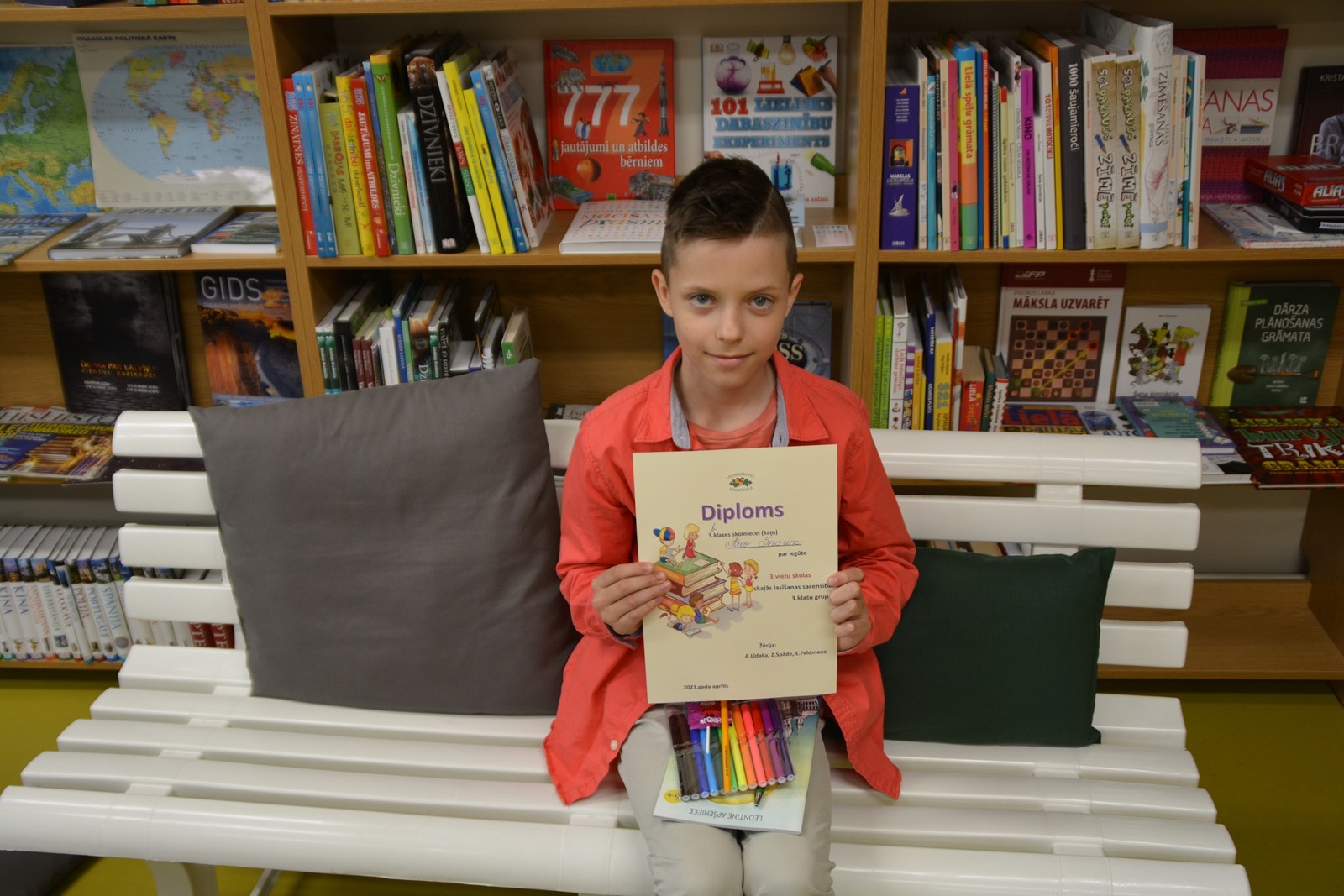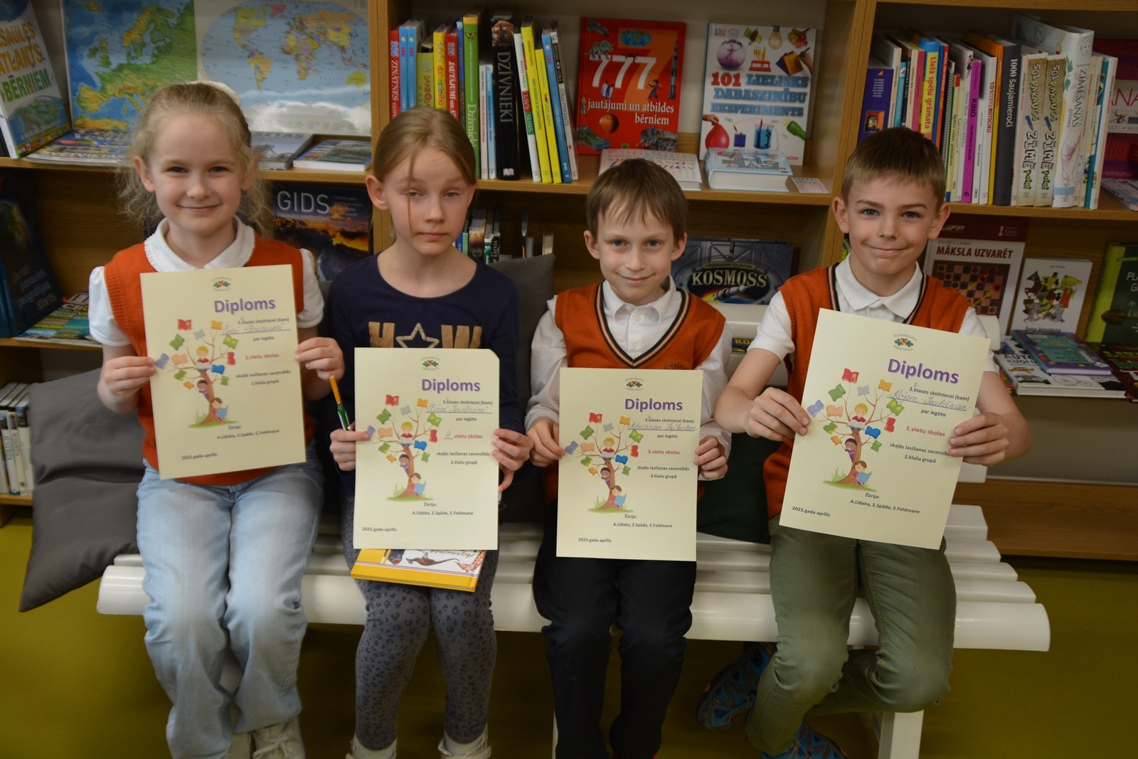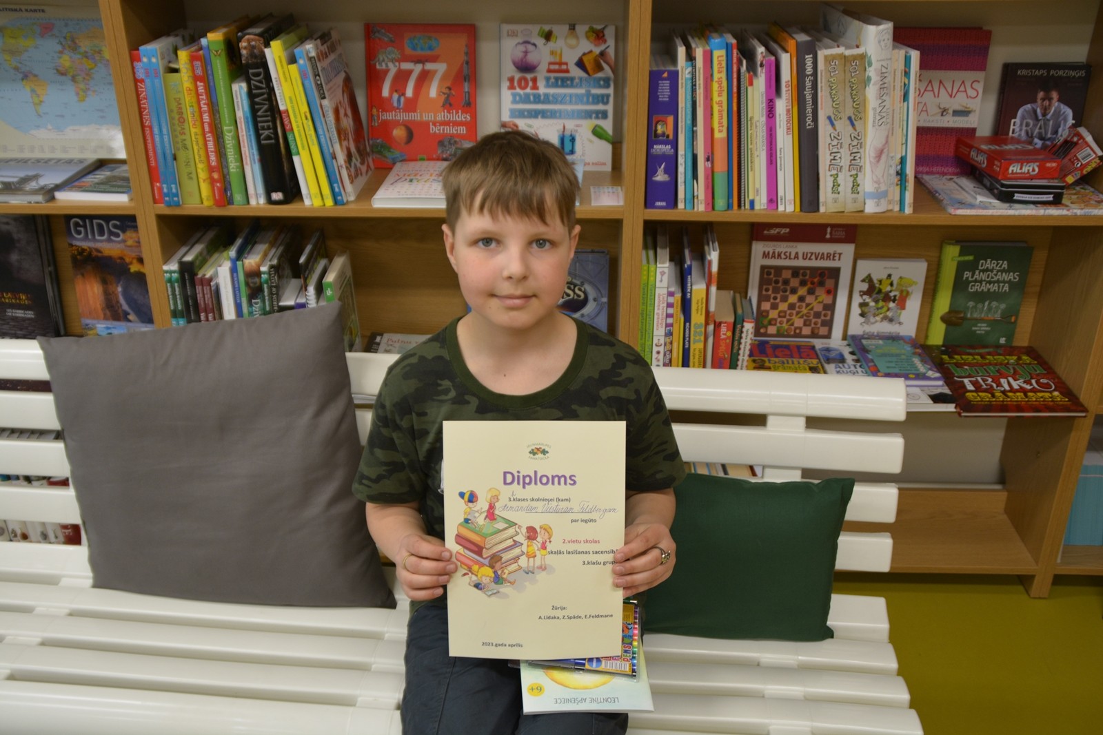 - vietas šajā konkursā ieguva divi dalībnieki – Tīna Bērziņa no 3. c un Arvo Šnore no 3.b klases. Tīna lasīja A. Milna grāmatas “Vislabākais lācītis pasaulē” fragmentu, savukārt Arvo – M., T. Prohasko “ Kur pazuda jūra?” grāmatas fragmentu.