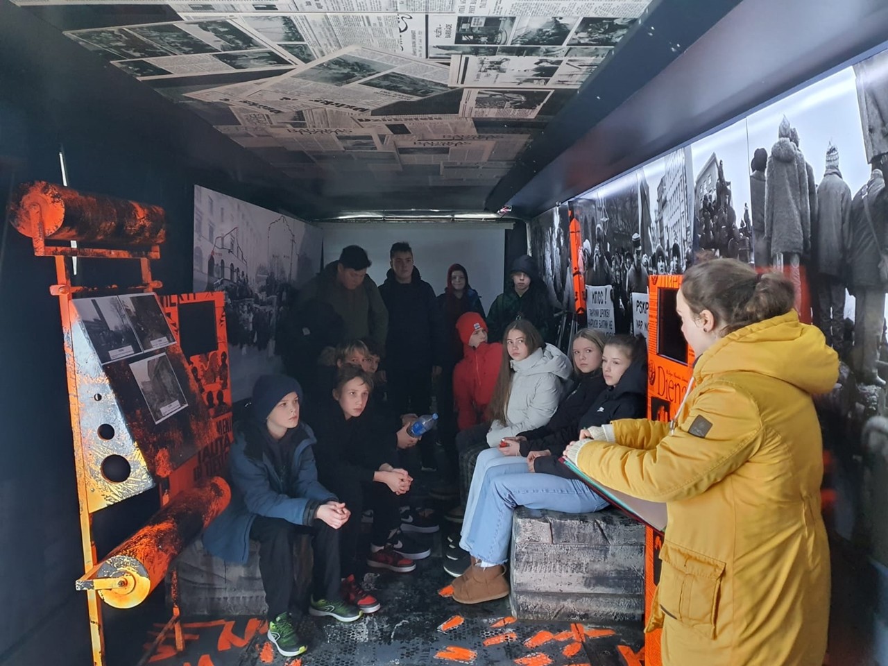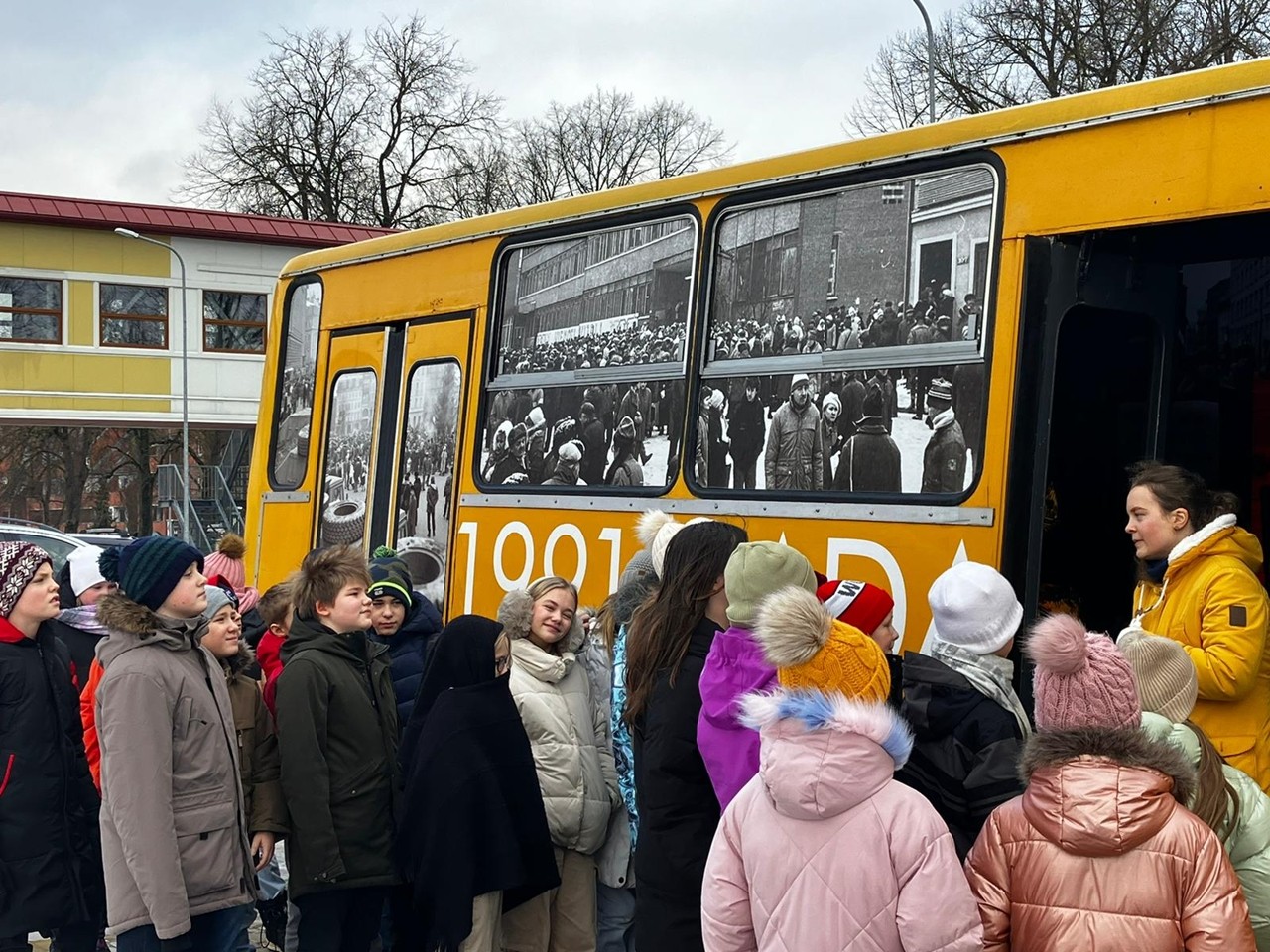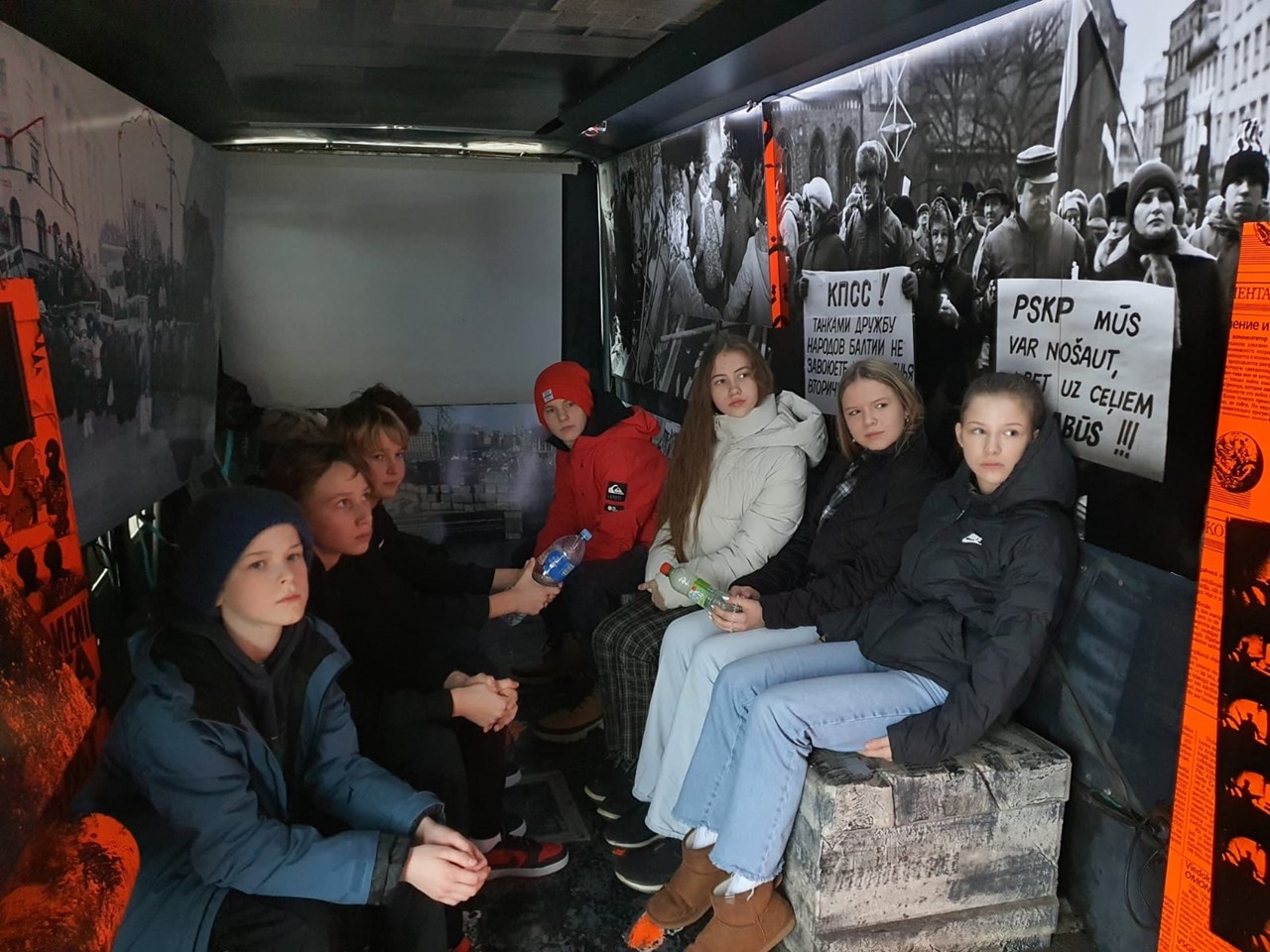 23.janvārī, pieminot 1991.gada barikāžu notikumus, skolā viesojās Barikāžu muzeja ceļojošā izstāde/mācību vide muzeobuss.