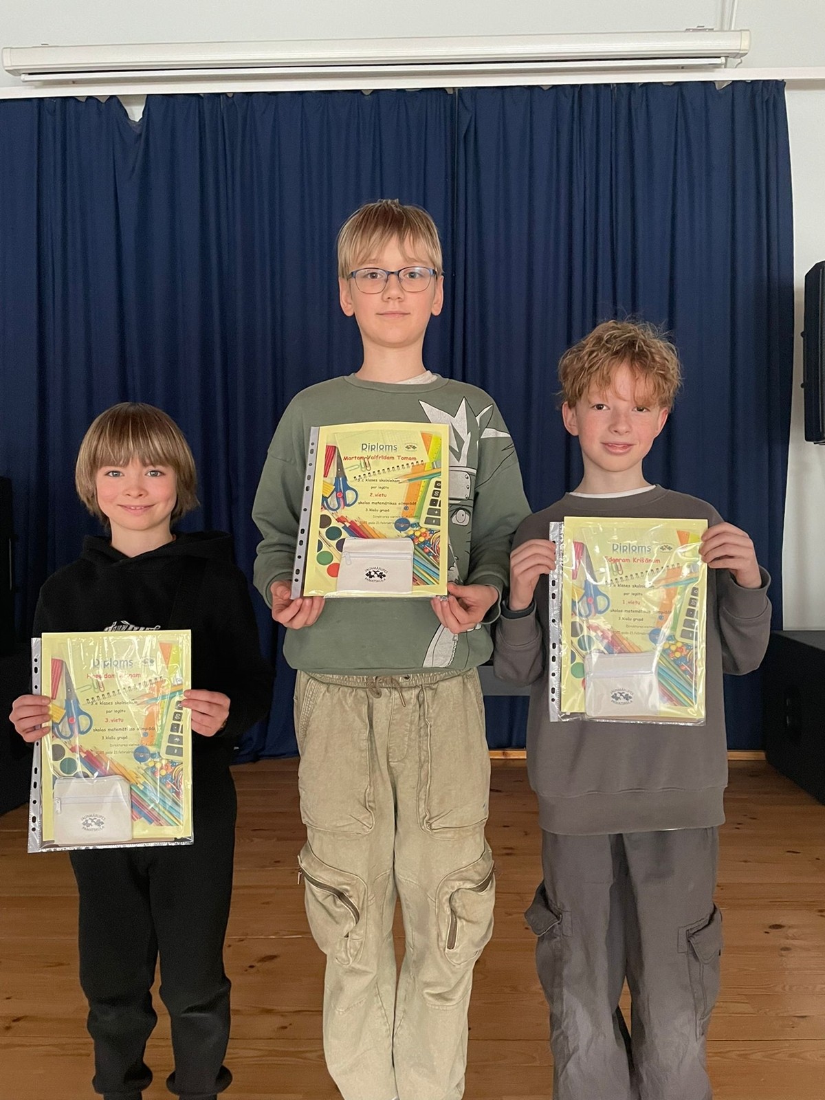 Mūsdienu pasaulē pieprasījums pēc standarta uzdevumu risinātājiem samazinās – tos aizstāj efektīvākas tehnoloģijas. Tā vietā pieaug vajadzība izprast un atrisināt nestandarta situācijas un problēmas. Skolā papildus skolas matemātikas kursam, skolēniem tiek piedāvāts attīstīt viņu problēmu risināšanas prasmes matemātikas 2.-3.klašu pulciņa nodarbībās “Mazie Einšteini”. Jau vairākus gadus skolā organizējam skolas matemātikas olimpiādes, tajās var piedalīties gan pulciņa bērni, gan tie, kuriem padodas un mīl matemātiku. Šogad 3.klašu grupā 1.vietu ieguva Edgars Krišāns no 3.a klases, skolotāja Ilze Unda. 2.vietu – Marts Valfrīds Toms, skolotāja Aiva Zviedre, 3.vietu – Haralds Āriņš, skolotāja Signe Legzdiņa Koreņuka. Olimpiādes bija kā iesildīšanās, lai 20.martā piedalītos starptautiskajā matemātikas konkursā “Ķengurs 2025.”