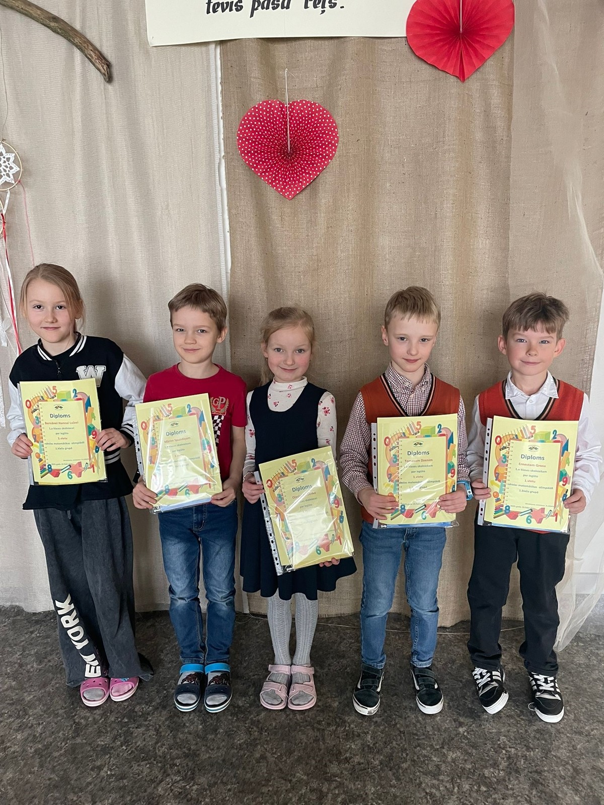 19.februārī tika organizēta skolas mēroga matemātikas olimpiāde. Pirmo klašu skolēniem šī bija pirmā pieredze piedalīties ārpusstundu aktivitātē, lai pārbaudītu savas līdzšinējās matemātiskās prasme. Bija jāprot patstāvīgi lasīt, izprast uzdevumu nosacījumus, veikt pareizu uzdevumu atrisināšanas pierakstu. Lai veicinātu skolēnu matemātisko domāšanu, tika iekļauti dažādi nestandarta uzdevumi, kas ļāva skolēniem izmantot katram savu matemātiskās domāšanas pieredzi. Jau no jaunākajām klasēm skolēnam ir jāapzinās, ka uzdevumam var būt vairāki atrisinājumi. Skolas 1.klašu matemātikas olimpiādē piedalījās pieci dalībnieki no katras klases.