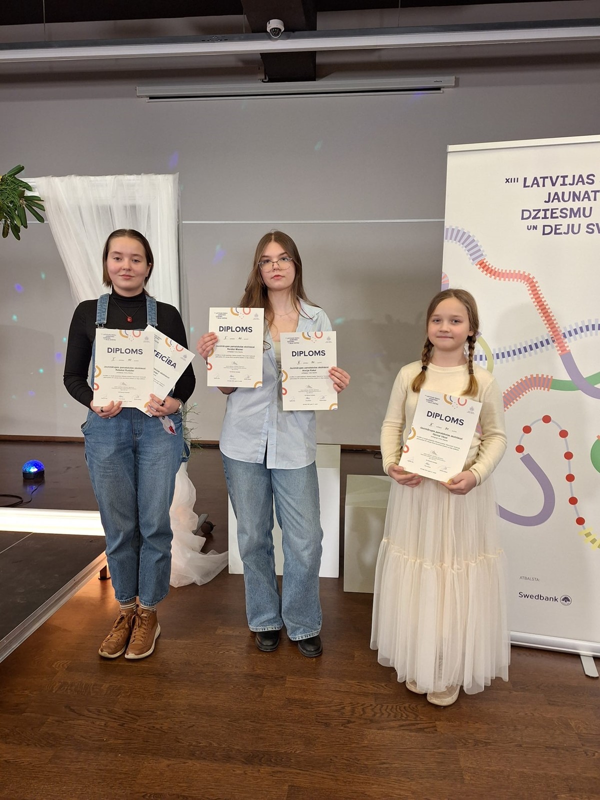 Mūsu skolas skolnieces veiksmīgi piedalījās mākslas projekta “StaroJums” vizuālās, vizuāli plastiskās mākslas, dizaina un tehnoloģiju programmu konkursa 2.kartā Jūrmalā, saņemot 2. un 3. pakāpes diplomus un pateicību. Vizuāli plastiskajos darbos, tamborējumā un adījumos tika attēlota latviešu tautas gudrība, tradīcijas, vērtības un Latvijas dabas skaistums.