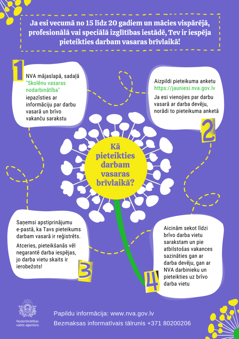 - 2. maijā no plkst. 10.00 dalībai vasaras nodarbinātības pasākumā sāk reģistrēties tie skolēni, kuri vēlas vasaras brīvlaikā strādāt Rīgas reģionā.