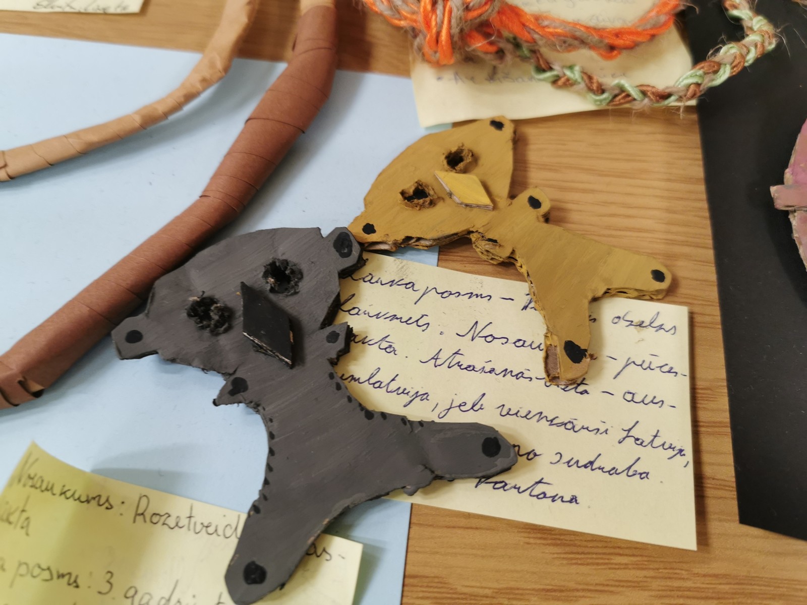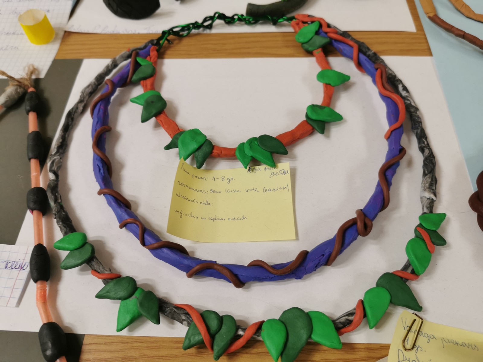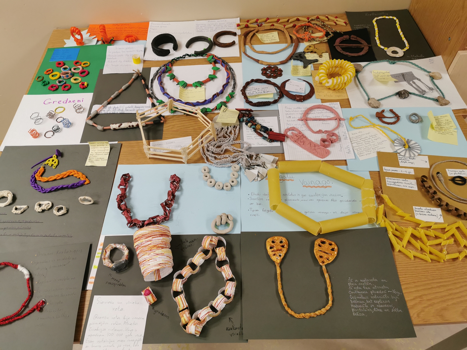 7.klases, kurām vēsture jau ir ierasts priekšmets, iejutās rekonstrukciju speciālistu un rotkaļu lomās, veidojot senlatviešu rotu replikas. Grupās, skolēni paši izvēlējās kādas rotas gatavot, pētot grāmatas par arheoloģiju Latvijā, vienojās par materiāliem un kopīgi klasē veidoja savus darbus. Rotas tapušas gan no makaroniem, gan plastilīnā un pat akmens! Katrai rotai tapa arī informatīva lapiņa – gluži kā muzejā! Izstāde apskatāma līdz 15.oktobrim 133.kabinetā.