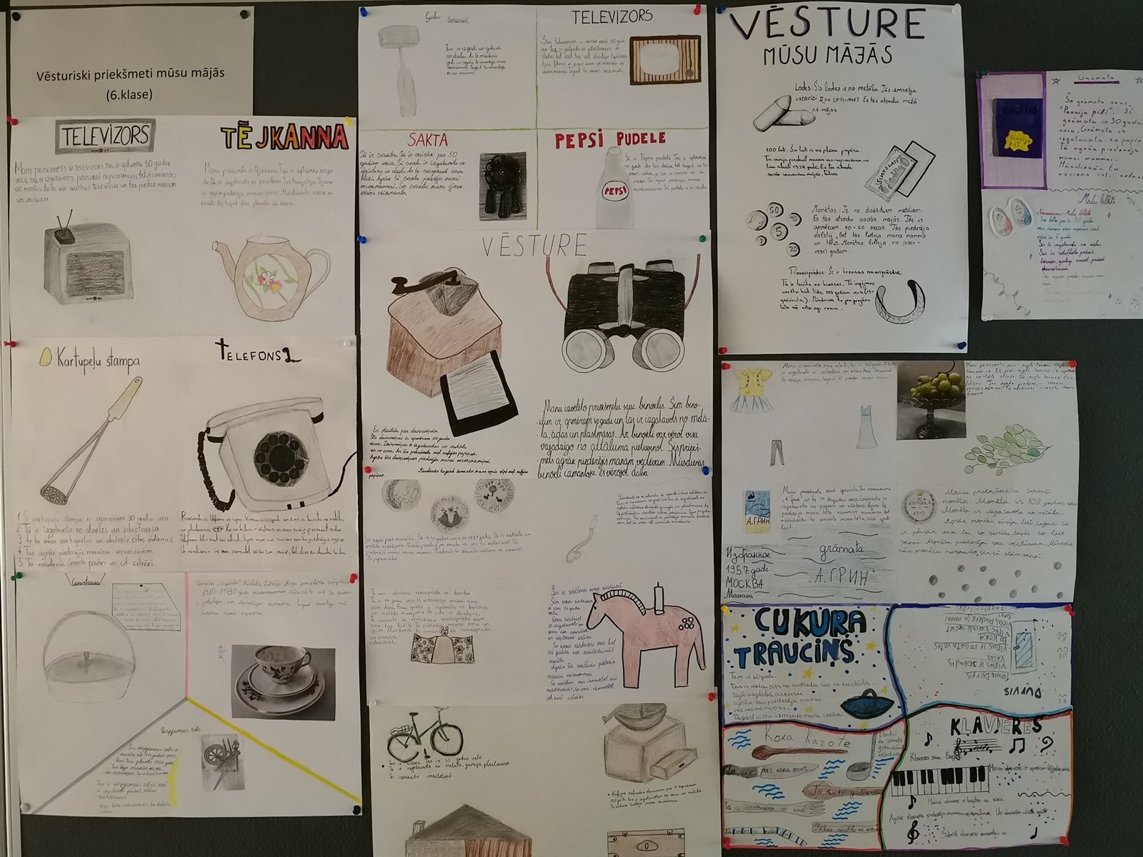 6.klases, kuras vēsturi mācās pirmo gadu, iepazina vēstures priekšmetus savās mājās un kopīgi veidoja plakātus, kuri stāsta par šo priekšmetu pagātni un tagadni. Plakāti apskatāmi skolas 1.stāva gaitenī līdz 18.oktobrim.