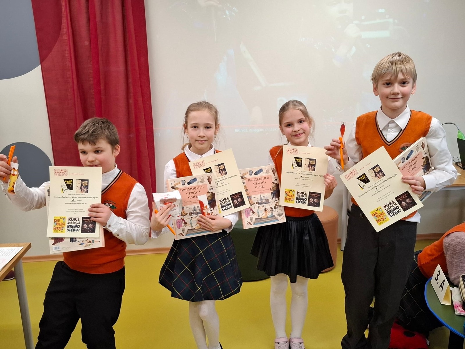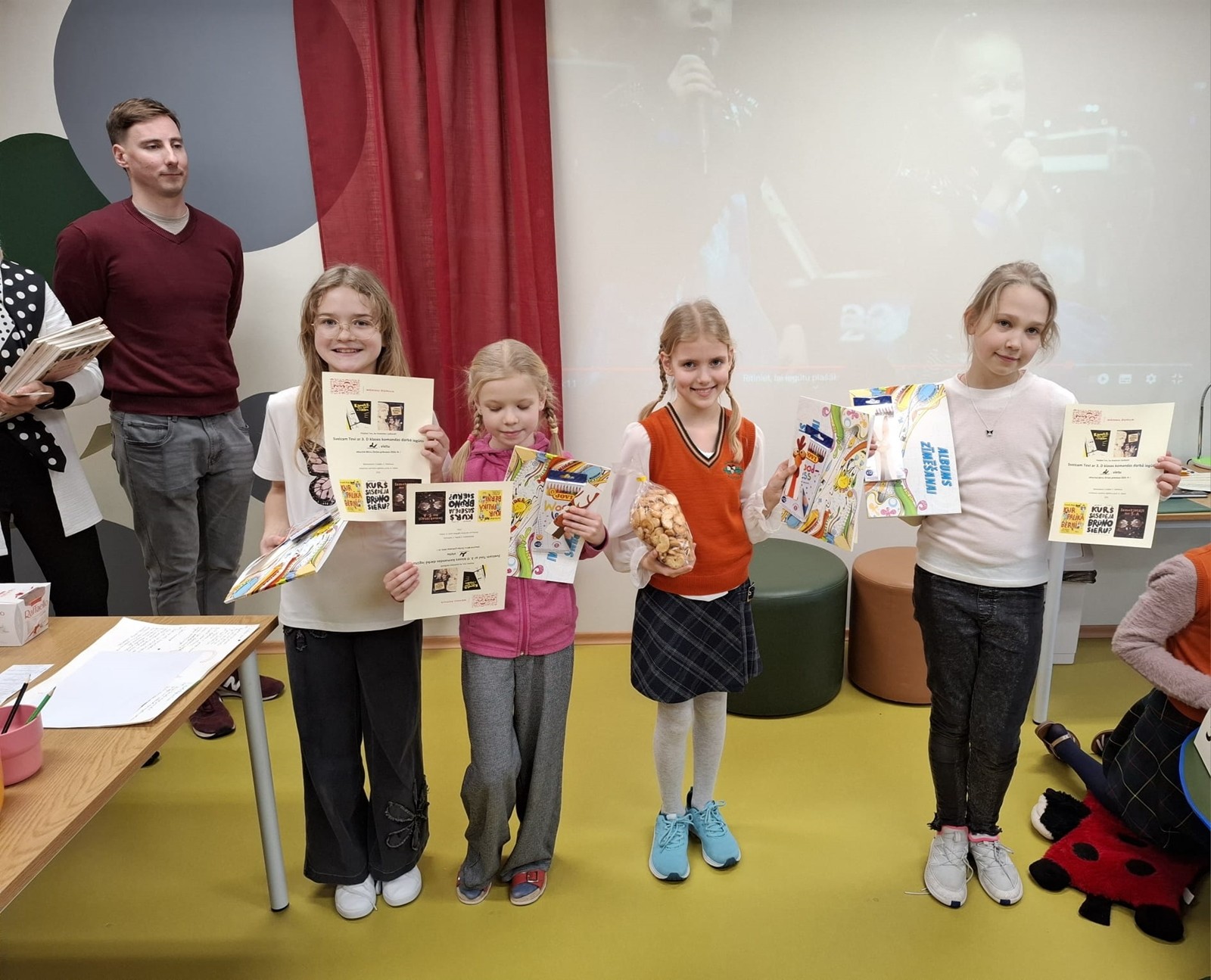 Izlasīto grāmatu notikumus vislabāk atcerējās 3.c klases komanda “Grāmatu izzinātāji”, demonstrējot arī iespaidīgu savas komandas prezentāciju, līdz ar to viktorīnā iegūstot 1.vietu!