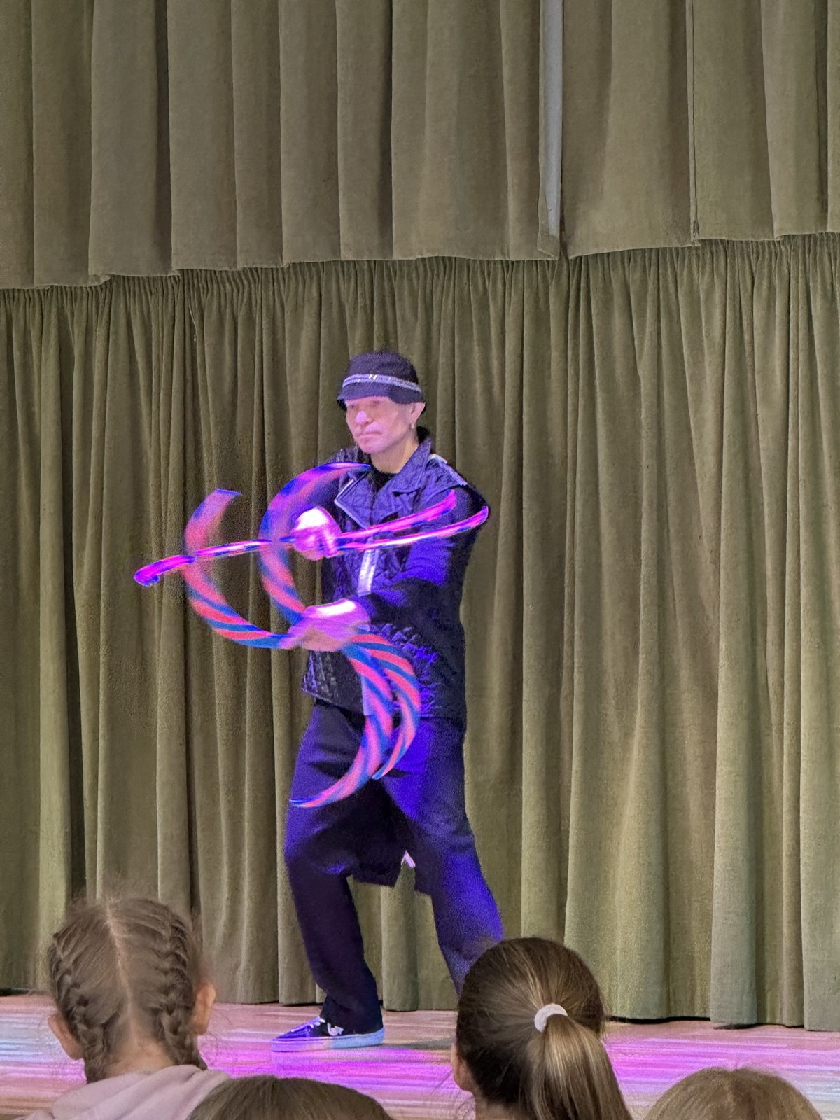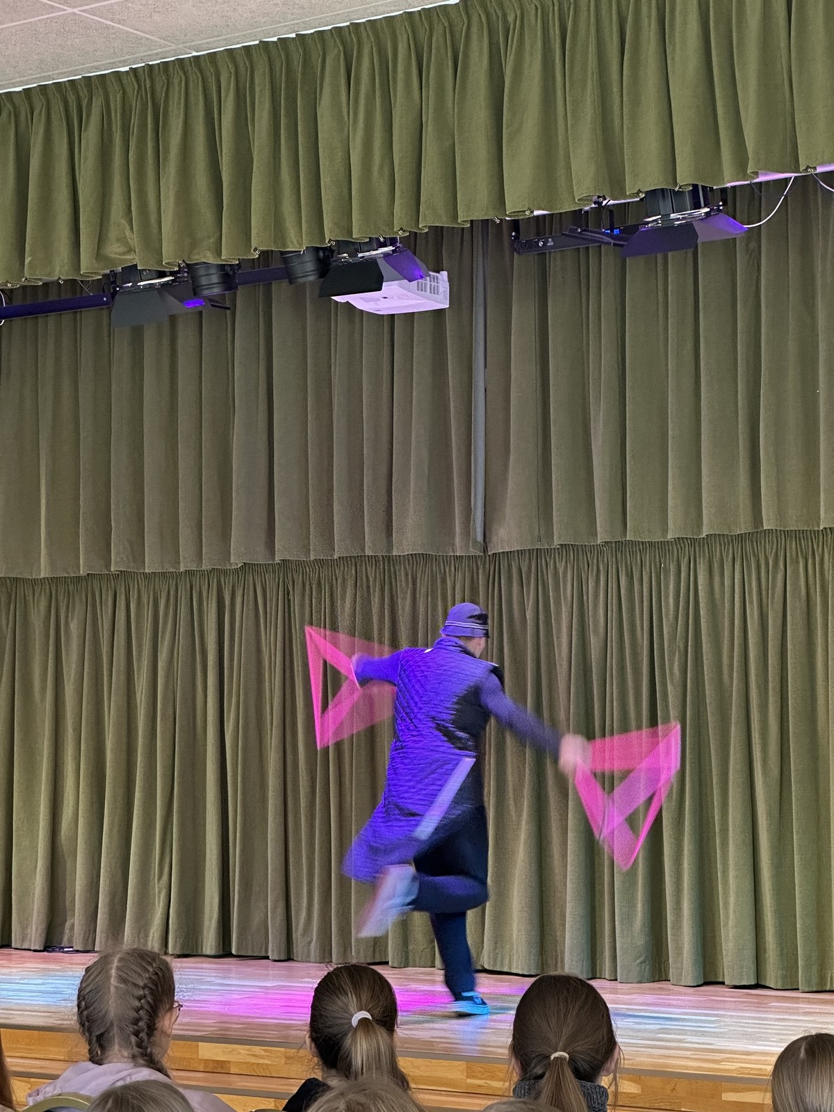 Vai Tu zini, kas ir “ouroboros”? Tas ir sens simbols, kas attēlo čūsku, kas kož pati sev astē, veidojot apli. Ouroboros simbolizē bezgalību, atjaunošanos, vienotību un pašrefleksiju. 8.aprīlī 5.klašu un 4.c klases skolēniem, projekta “Latvijas Skolas soma” ietvaros, bija iespēja apmeklēt vizuālās žonglēšanas izrādi “Ouroboros” – laikmetīgā cirka izrādi, kurā, apvienojot cirku, mūziku un dramaturģiju, tiek stāstīts par matemātiskām figūrām saistībā ar pasaules vēstures attīstību. Izrādes sižets attīstās no tukšuma līdz bezgalīgai kustībai, kas simbolizē dzimšanu, attiecību veidošanos, mijiedarbību un ciklisku atdzimšanu. Caur mūziku, matemātiku un žonglēšanu skatītāji tiek iepazīstināti ar ideju par nepārtrauktu kustību un pārmaiņām pasaulē.