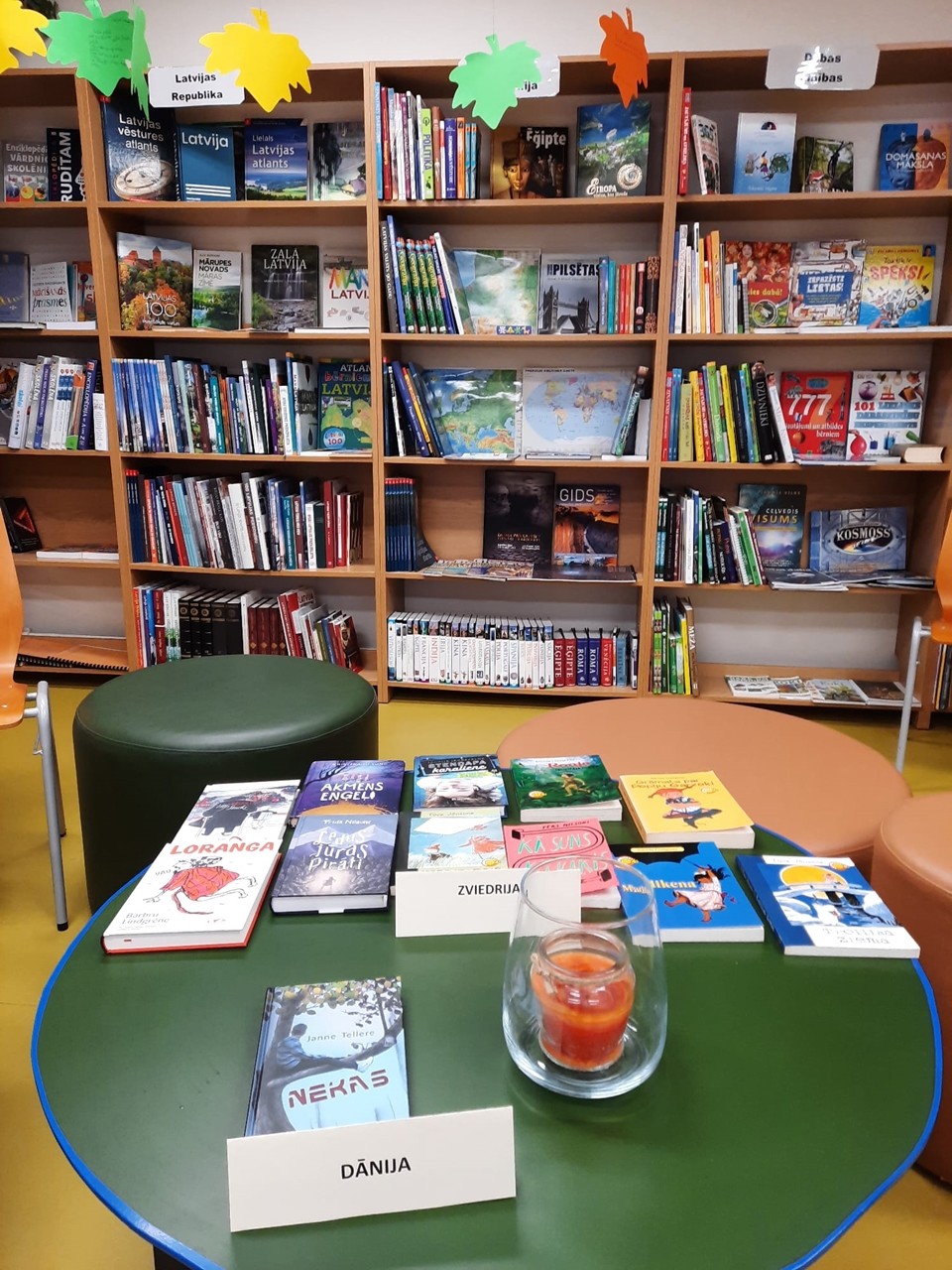 Nodarbībā bērni tiek iepazīstināti ar Ziemeļvalstu autoru grāmatām, kādas pieejamas mūsu bibliotēkā, grāmatas tiek sagrupētas uz galdiem pa valstīm. Pēc tam projektorā skatāmies, kur šīs valstis atrodas, kas ir to galvaspilsētas, cik lielas tās ir. Bērni pastāsta gan par savu ceļošanas pieredzi, apmeklējot šīs valstis, gan lasīšanas pieredzi- atklājot, kuras no Ziemeļvalstu autoru sarakstītajām grāmatām ir izlasījuši paši un kuras no tām patikušas visvairāk. Pēc tam spēlējam radošo spēli- bērni izvēlas vienu no grāmatām un izveidojam kopīgu stāstu, izmantojot katrs savas izvēlētās grāmatas nosaukumu- ieliekot to savā stāstījumā. Nodarbības nobeigumā iededzam sveci un, nomainot cits citu, lasām izvēlēto Ziemeļvalstu autora grāmatu. Šogad lasījām fragmentu no zviedru rakstnieces A. Lindgrēnes grāmatas “Lennebergas Emīls”.